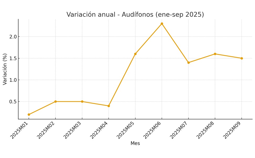 El precio de los audífonos continúa en la senda alcista al registrar un repunte del 1,5% en septiembre respecto al mismo mes de 2024, según los datos del Instituto Nacional de Estadística recogidos por Audioaldia.com.
