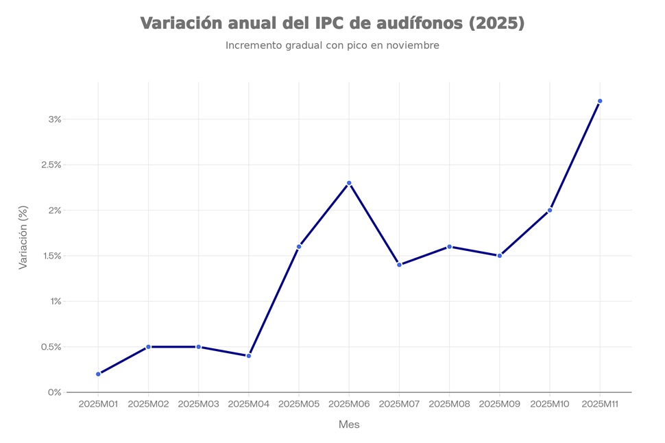 El dato de noviembre se convierte así en el mayor aumento registrado en lo que va de 2025, confirmando la presión inflacionista sobre el precio de los audífonos.