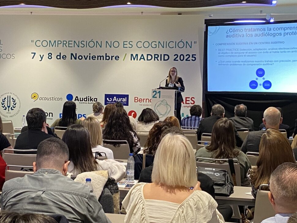 El congreso dedicó también un espacio amplio al papel de la inteligencia artificial y a cómo esta tecnología está transformando la audiología. En una de las ponencias, Amparo Callejón Leblic, ingeniera en telecomunicaciones, señaló que el sector está entrando en una nueva etapa. “Estamos virando de la audiología tradicional a una audiología basada en datos”, afirmó. Según la experta, este cambio abrirá nuevas oportunidades para los profesionales, permitiendo desarrollar soluciones más personalizadas e innovadoras para el tratamiento de la hipoacusia.