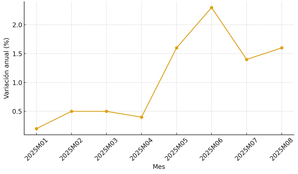 El transporte fue el grupo con mayor incidencia en el avance del IPC general, con un incremento del 1,2% en su tasa anual, impulsado en parte por la subida del transporte aéreo de pasajeros respecto a agosto de 2024.